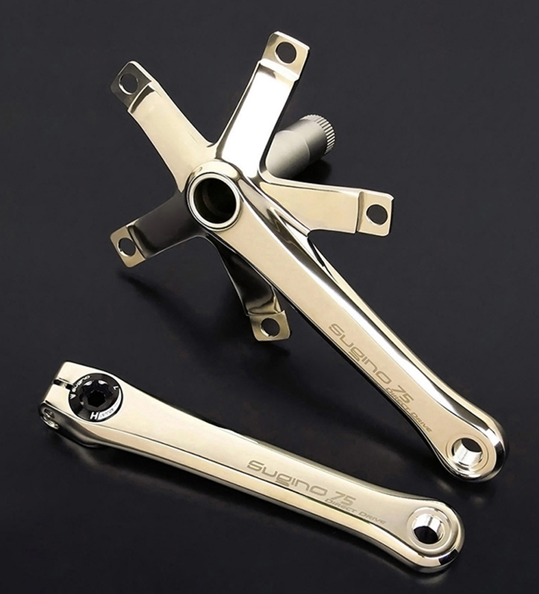 製品仕様 Axle Type : 4-TAPER (SG75 taper) P.C.D. : 144mm Length : 165 , 167.5 , 170 , 172.5 , 175mm Chain Line : 42mm (BB-SG75) Color : Silver ※NJS 認定品です。