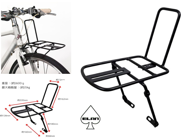 MTBやクロスバイクへの装着を前提として,前輪クイックとカンチブレーキ台座での固定としていますので,サスペンションフォークにも問題なく取り付けることができます。専用ロングサイズクイック付き。